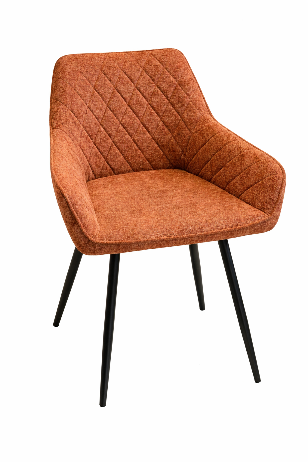 La chaise repose sur de fins pieds en métal noir qui lui confèrent stabilité et style contemporain. Disponible en trois coloris tendance – terre cuite, gris et gris foncé – vous trouverez toujours une version qui s'harmonisera parfaitement avec votre intérieur.
