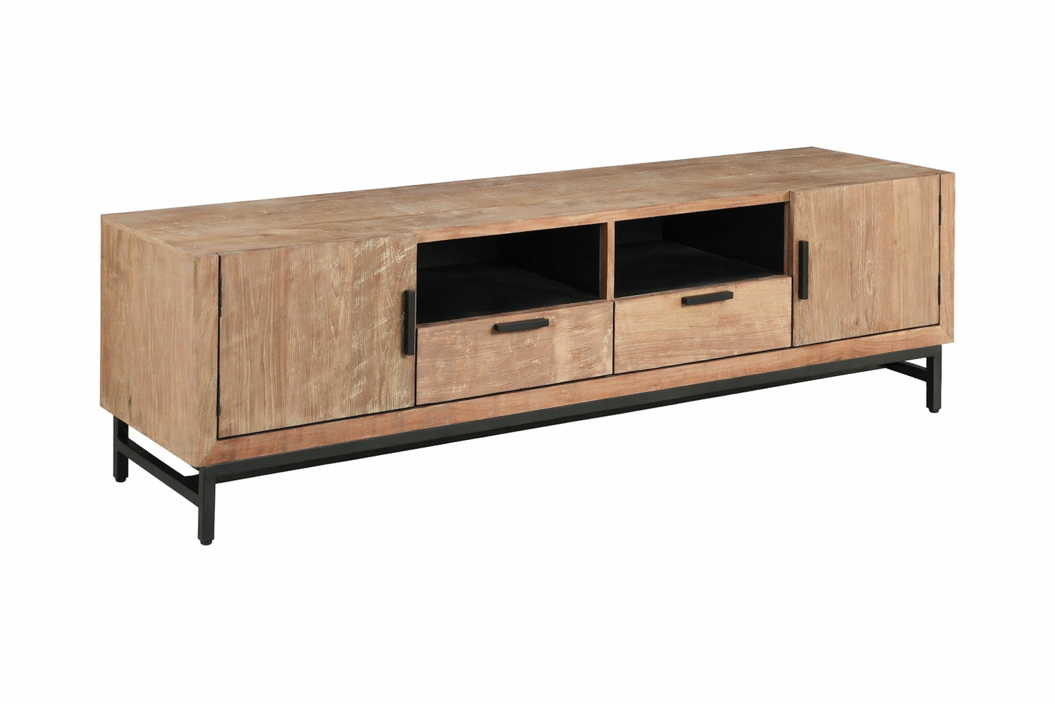 Ce meuble TV en bois élégant allie un aspect chaleureux et naturel à une structure métallique moderne. Doté de portes, de tiroirs et de compartiments ouverts, il offre un espace de rangement pratique pour vos appareils et accessoires. Il s'intègre parfait Lire plus
