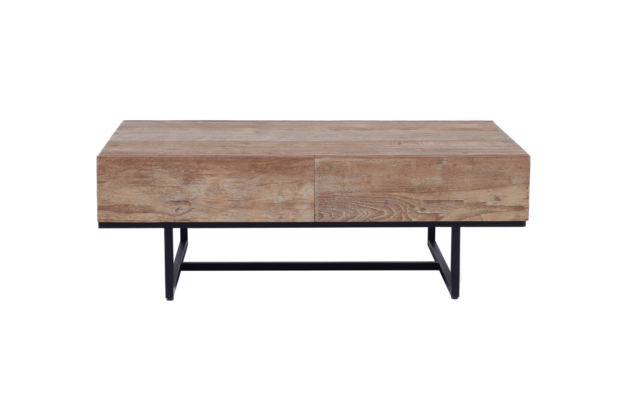 Cette élégante table basse associe des tons chauds de bois à un piètement métallique épuré pour un style industriel moderne. Dotée d'un tiroir spacieux pour un rangement pratique, elle est idéale comme pièce maîtresse fonctionnelle et chaleureuse dans vot Lire plus