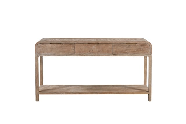 Cette élégante table d'appoint en bois allie un style chaleureux et naturel à un espace de rangement pratique grâce à ses trois tiroirs et une étagère inférieure supplémentaire. Idéale pour l'entrée, le salon ou la salle à manger, elle s'intègre aussi bien dans un intérieur moderne que dans un intérieur champêtre.