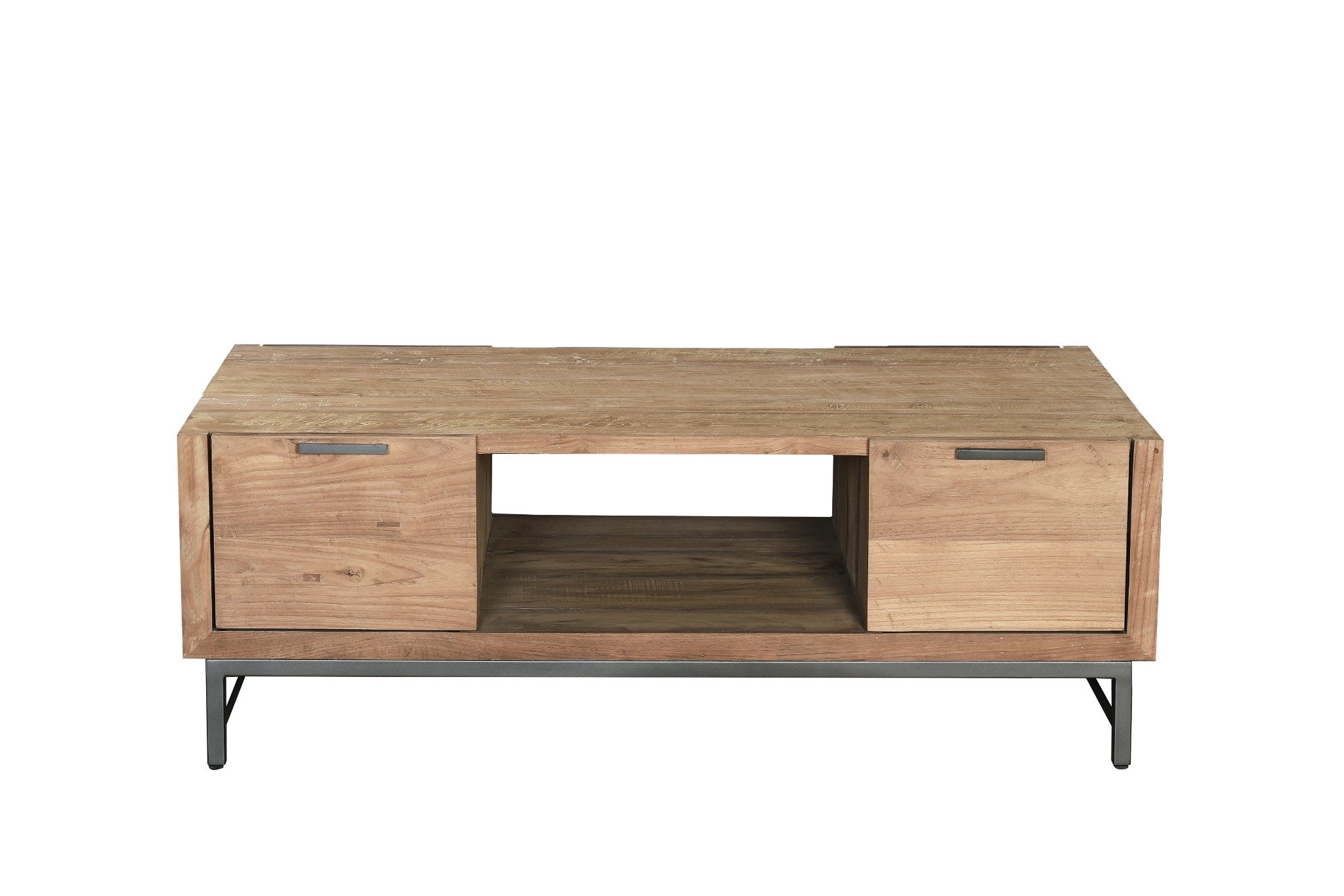 Deze stijlvolle salontafel combineert warm hout met een strak metalen onderstel voor een moderne, industriële uitstraling. Voorzien van twee lades en een open vak voor praktische opbergruimte. Ideaal voor een opgeruimde en sfeervolle woonkamer. Lees meer