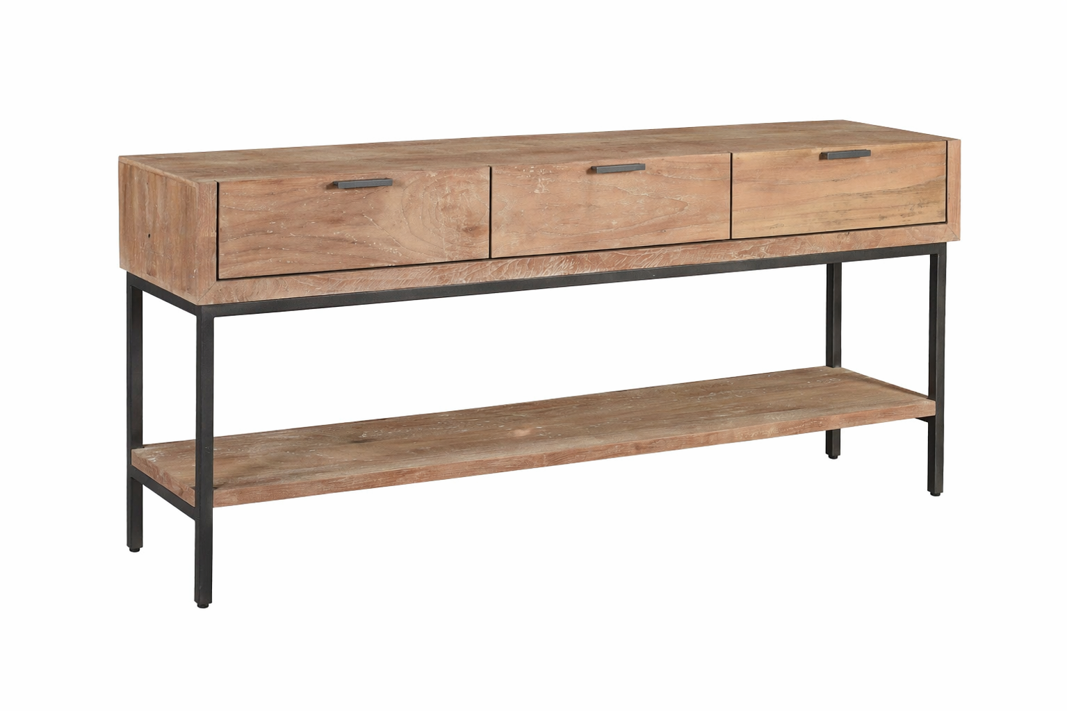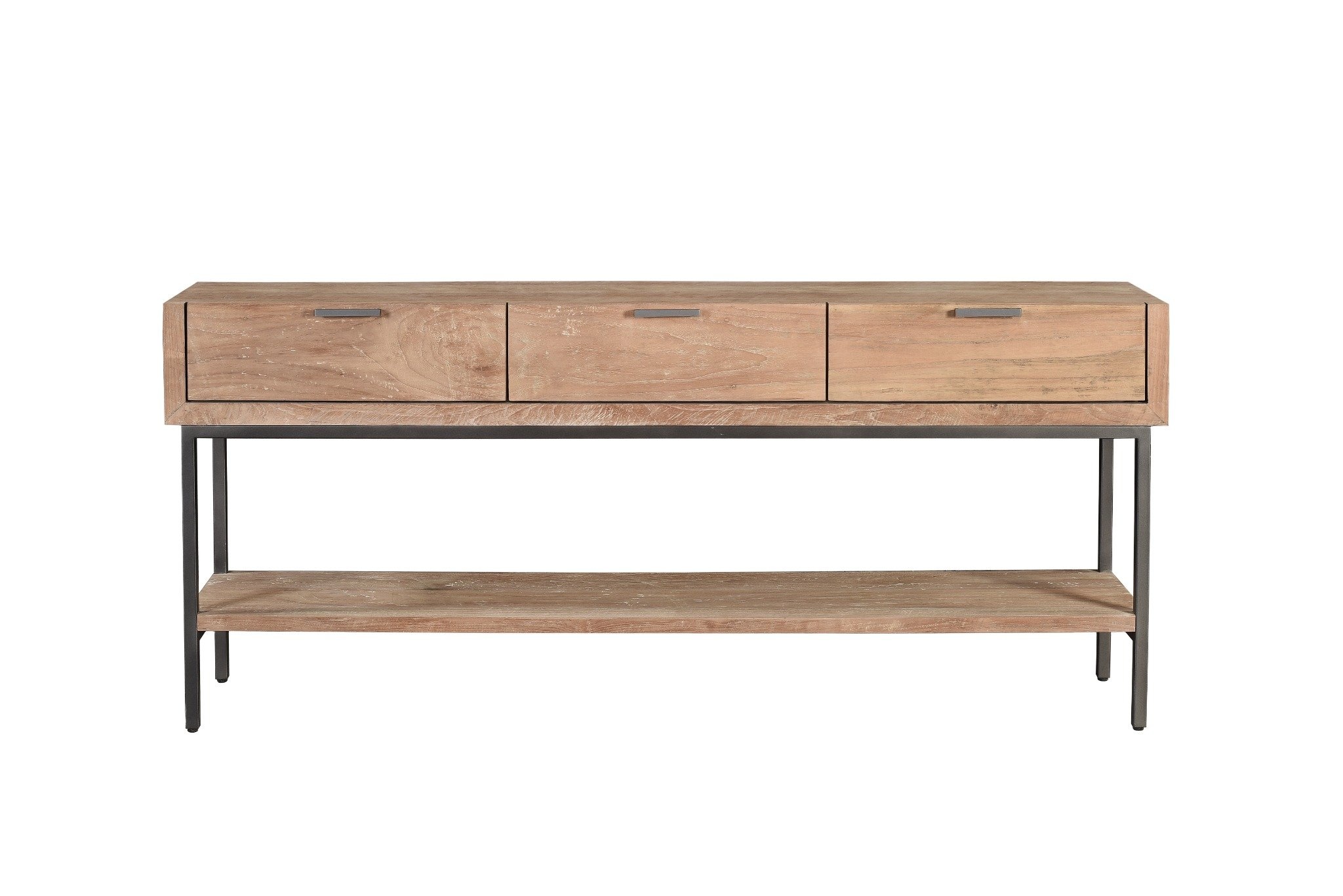 Dit stijlvolle dressoir combineert warm hout met een strak metalen onderstel voor een moderne, industriële uitstraling. Voorzien van drie ruime lades en een praktisch onderblad voor extra opbergruimte. Perfect als sidetable in hal, woonkamer of eetkamer.