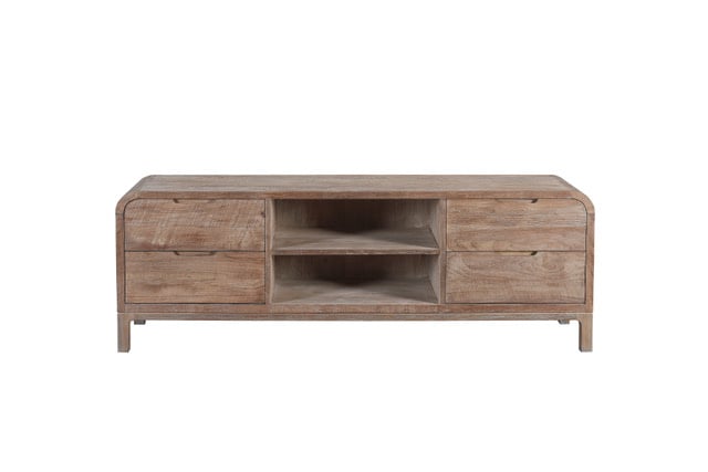 Dit stijlvolle houten tv-meubel combineert een warme, natuurlijke uitstraling met praktische opbergruimte. Voorzien van lades en open vakken voor apparatuur en accessoires. Tijdloos design dat past in zowel moderne als landelijke interieurs. Lees meer